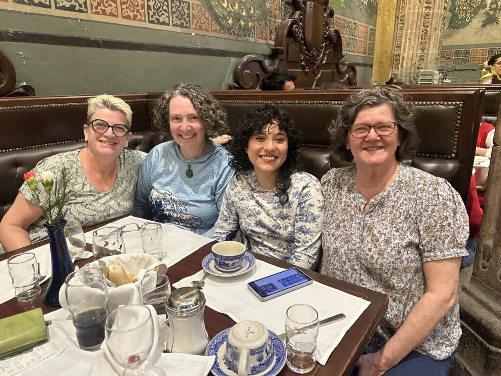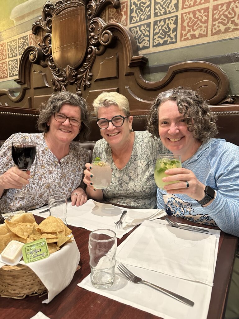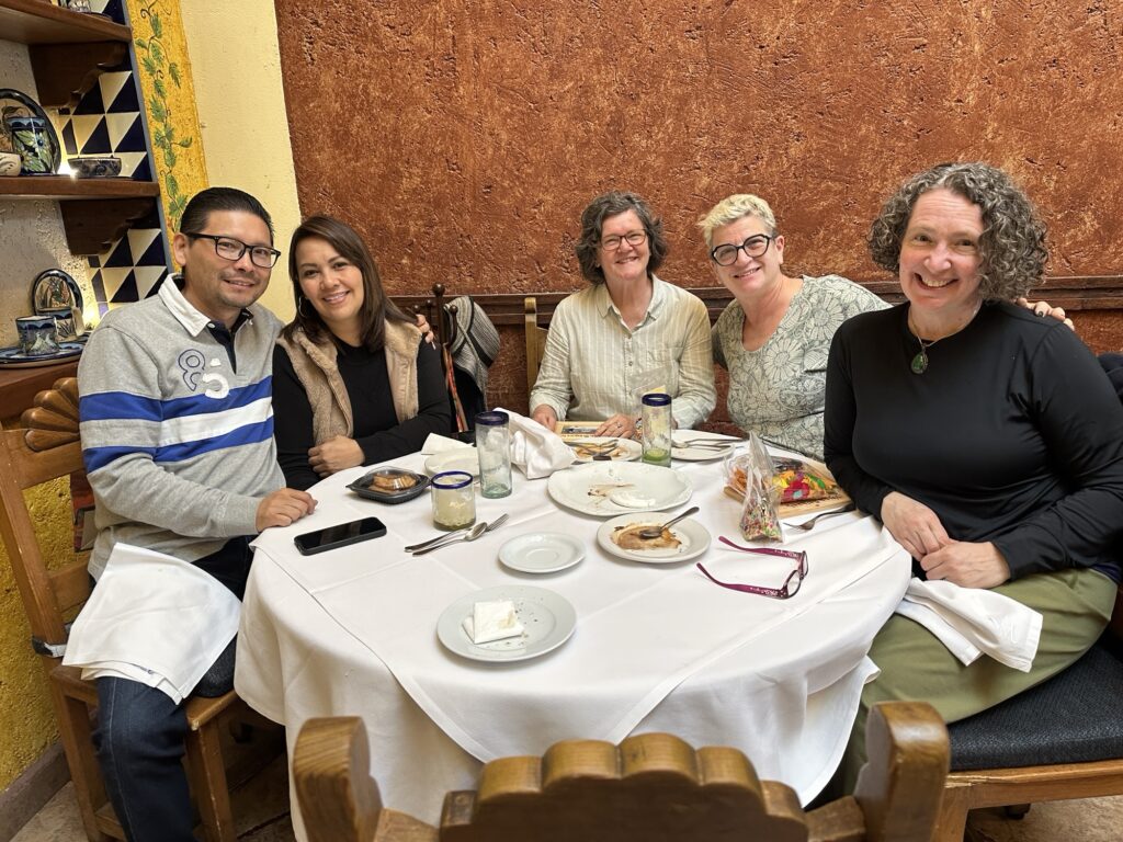 I took a siesta in the afternoon and then welcomed Michelle and Leslie-Anne. We went out for tacos – there were some great veggie options with portobello mushrooms, nopales (cactus pads) and something called irreals ( soy something that tasted so much like the real thing).