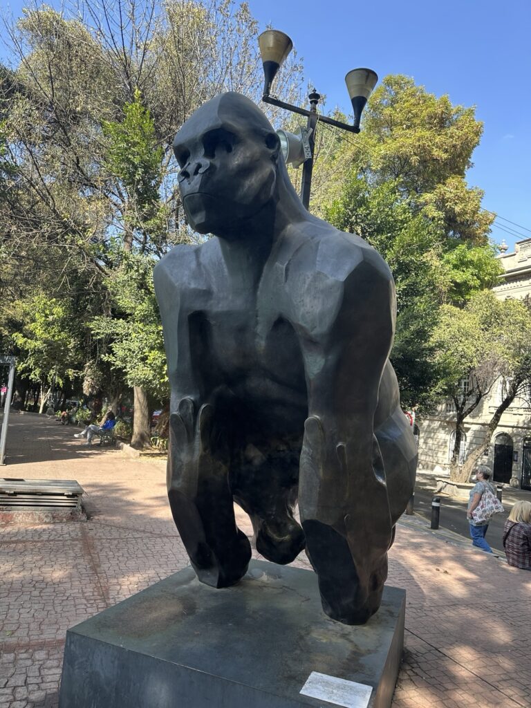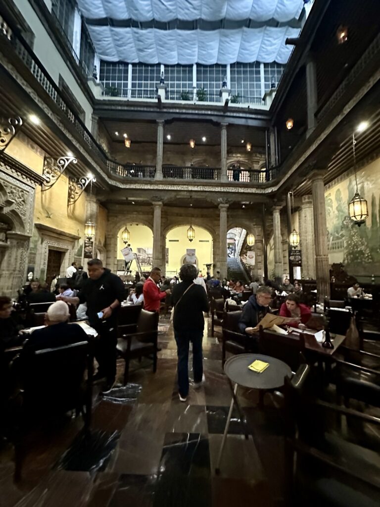 It took around an hour by bus and foot to go to the San ángel area around the Bazar Sábado. “Sábado”means “Saturday” so this collection of artisans have their “stores” in this 18th century home/building, and it is only open on Saturday. There is a bit of everything – so many beautiful handmade artisanal items. Michelle returned to a sculptor whom she had seen two years ago, and always regretted not buying a piece from him. She found something beautiful to bring home this time from his shop. I bought a beautiful piece of clothing from twin sisters who design clothes and jewelry. Their names are Paulina and Malinali Fosado. Check them out on instagram: @paulina_malinali