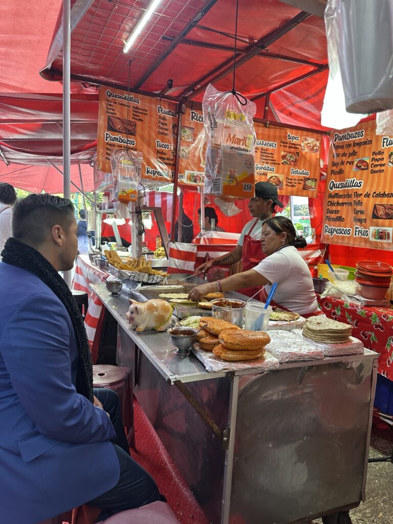 After briefly stopping at the apartment to drop off our purchases and change our clothes, our next stop was Chapultepec Park. Chapultepec (meaning Grasshopper Hill in the indigenous language of Nahuatl) Park is the oldest and largest urban Park in Latin America and one of the oldest urban parks in the world. It contains 9 museums, a variety of green recreational spaces, and a multitude of vendors selling snacks and souvenirs which give it a bit of a festival atmosphere – all year round. We checked out the vendors that were on the way to the Castle at the top of the hill.