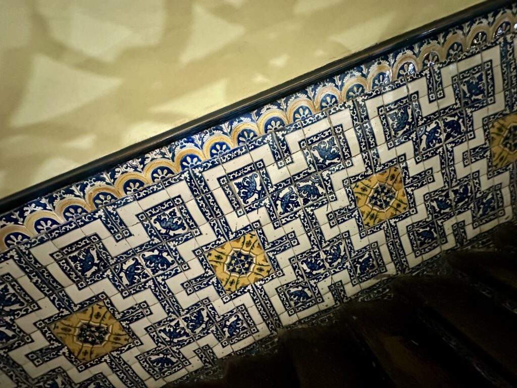 It is located up the coast, northeast of where are staying. The tile museum was fascinating. We had seen so many beautiful tiles on the walls and floors of cathedrals, chapels, palaces, and mansions. Going to this museum gave us a better understanding of the influences on the tile making, and how the techniques and production overlapped and were influenced by other cultures. As it is with most Art History, the sharing of techniques and styles between artists transcends borders. The word Azulejo comes from the Arabic word azzelij or al zeleycha which means “small polished stone” and refers to a ceramic piece, usually squared with one side glazed.
