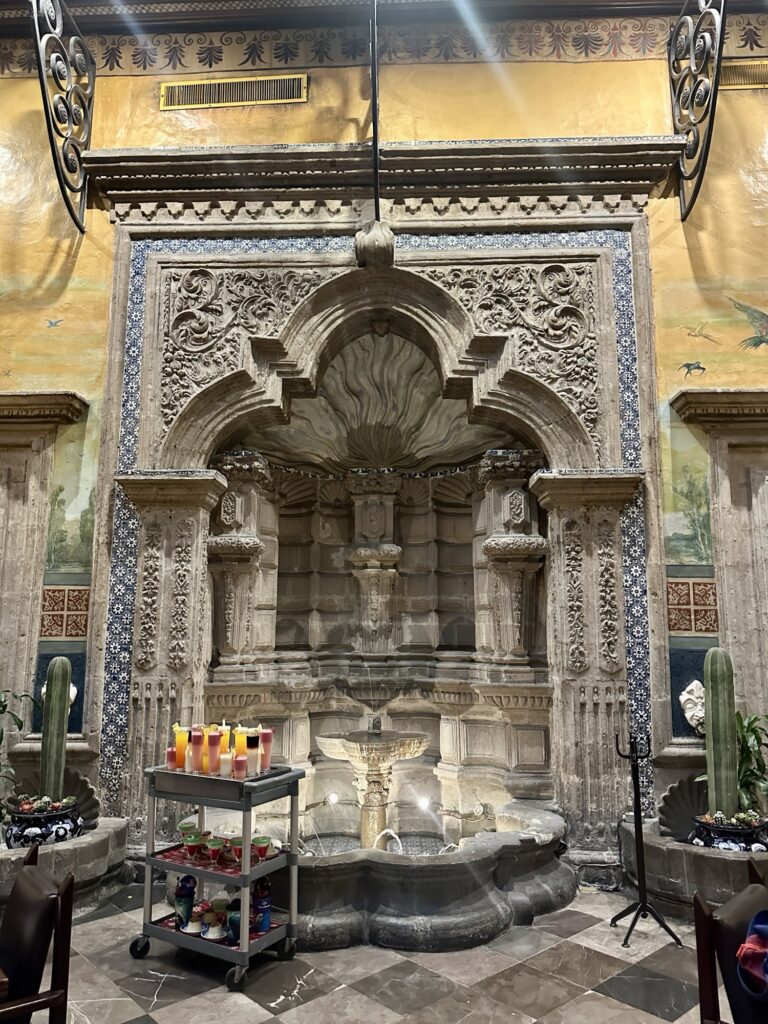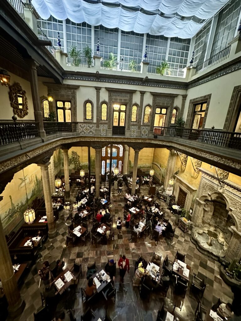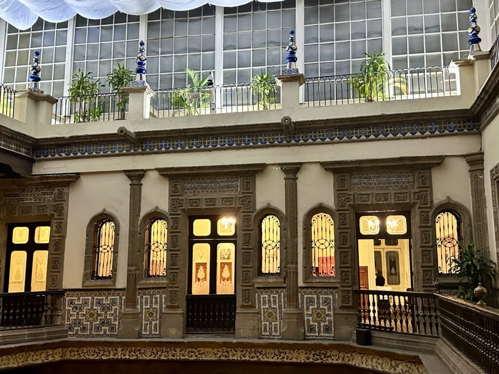 We also went through a local farmers market building where a local vendor ripped me off when I bought some fruit from himInteresting buildings along the wayThis was a pedestrian street full of international chain stores.San Francisco Convent outsideSan Francisco Convent insideLa Casa de Los Azulejos (traditional blue glazed tiles)La Casa de Los AzulejosLa Palacio de Bellas Artes