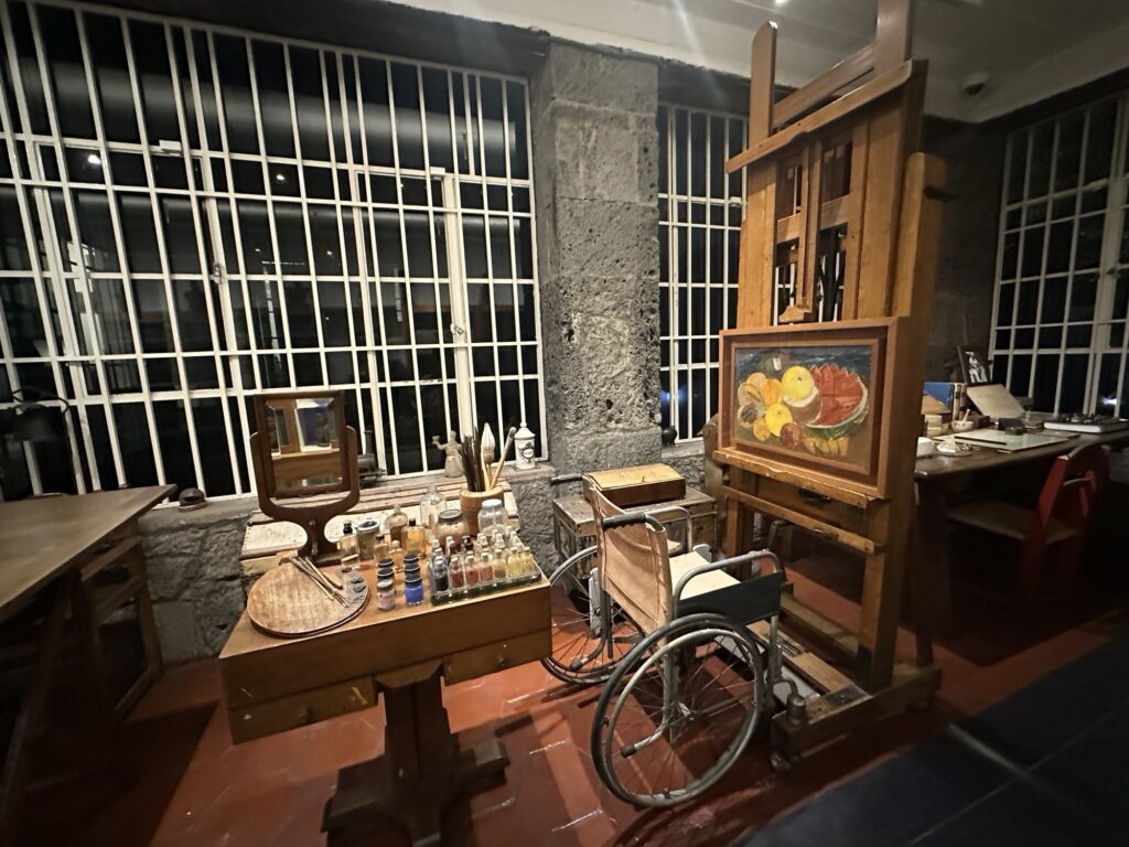 Frida spent a lot of time convalescing in this home. She contracted polio when she was six, which caused one of her legs to be shorter than the other. At age 18 she was in a devastating bus accident which left her body badly mangled with many fractures in her spine, pelvis, and other parts of her body. She was confined to her bed for about two years and this is when she began to paint to pass the time. Over her lifetime she had approximately 35 different surgeries. I will not go into her whole life story, but I recommend you look her up, as she lived a fascinating life and was extremely talented in so many ways. Her life was a life of pain and resilience, living life to the fullest she possibly could.